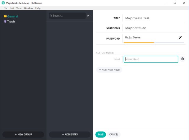 Buttercup also allows you to create categories. For example, you could create categories for credit cards, social media, bank accounts, games, email accounts, and anything you want. These categories make it easy to find your password should you have a lot of them.