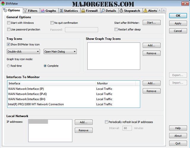 BWMeter is a multifunctional monitoring tool for controlling and measuring all the traffic to/from your computer with a powerful bandwidth meter, monitor, and traffic controller.
