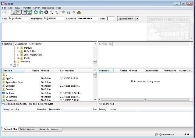 FileZilla setup can be completed by a simple server configuration with minimal clicks then, if you choose, a simple drag n' drop will have you up and running. All actions can be monitored through the site manager pane keeping you up-to-date with your tasks progress in real-time.