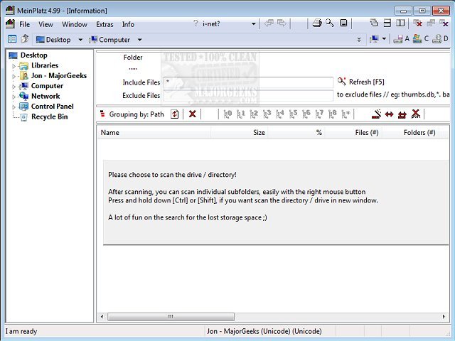 MeinPlatz, or My-Place, offers an easy and fast way to scan the hard disk for lost disk space.