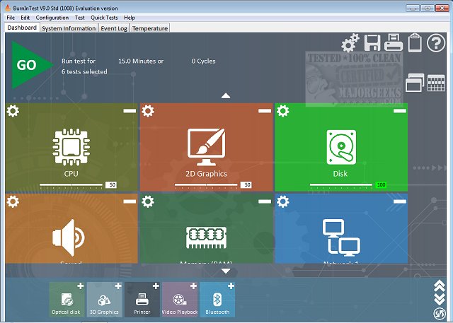 Passmark BurnInTest Standard is a software tool that allows all the major sub-systems of a computer to be simultaneously tested for reliability and stability.