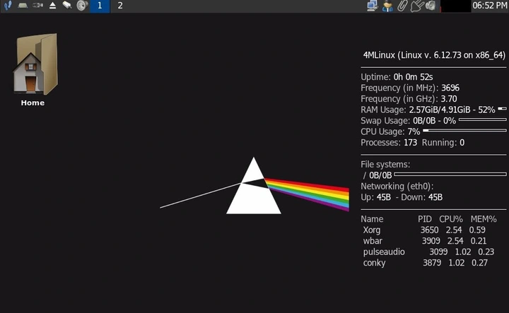 The 4MLinux 50.1 STABLE release features the new Linux kernel 6.12.73, which can be installed effortlessly using the command "zk update." This update improves audio playback on older hardware, enhances support for NVMe SSDs and Ryzen CPUs, and removes a memory-consuming "auto-repair" script from the previous version. Users will notice better performance and a more reliable system experience after running the update. To update, simply open a terminal, type the command, and reboot the system once the installation is complete