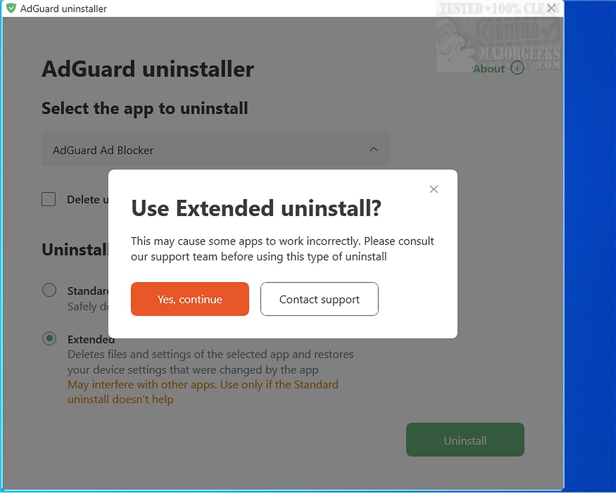 AdGuard Uninstaller is a specialized tool designed to help you remove AdGuard AdBlocker or AdGuard VPN, particularly when you encounter issues with these applications or face errors that hinder their reinstallation.