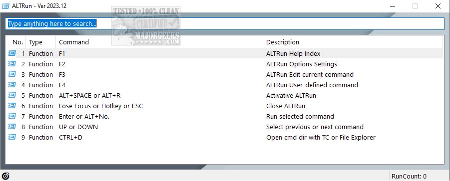 ALTRun is characterized by its portable nature, meaning it can run without installation, making it a practical choice for users on the go. Additional features include a highly customizable GUI, automatic adjustment of command rank priority based on usage frequency, and an AppControl function for better application management.