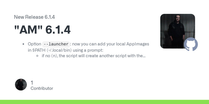 A new version of the AM application manager for AppImage is available. AM is an application manager that is inspired by AUR and serves as an AppImage manager, installer, and updater. It currently contains over 1800 AppImage packages and official standalone applications for GNU/Linux, which are derived from tar and zip archives.