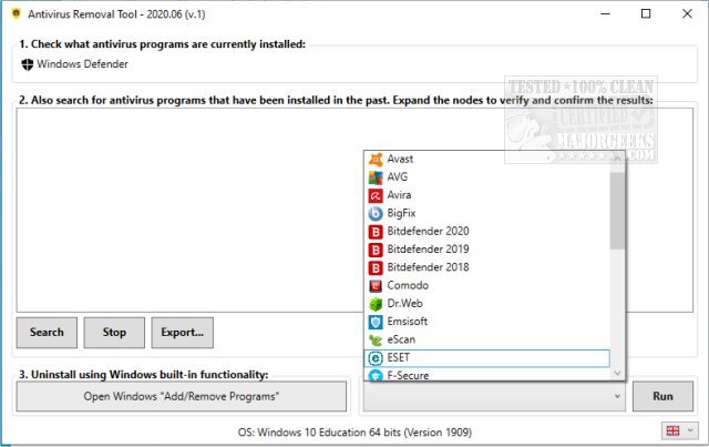Antivirus Removal Tool provides a portable option for detecting and then uninstalling multiple pieces of antivirus software from your machine.