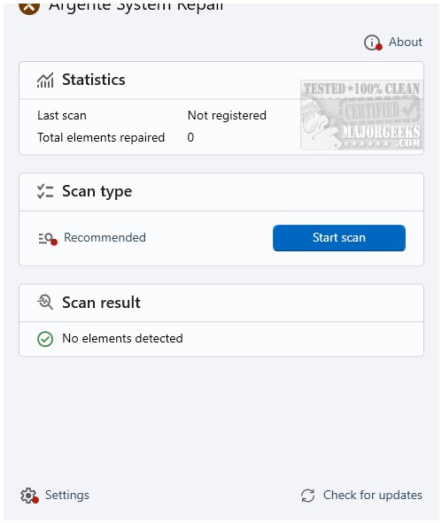 Argente System Repair is a lightweight, no-nonsense tool that scans your system for common Windows problems and applies targeted fixes. This tool is a part of Argente Utilities.