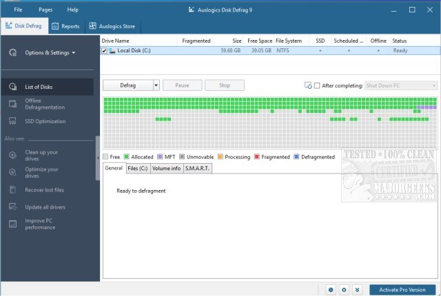 Key features of Auslogics Disk Defrag include: