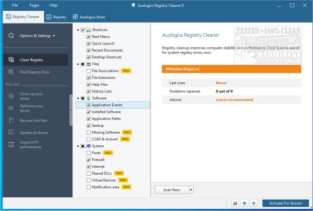 Key features of Auslogics Registry Cleaner include: