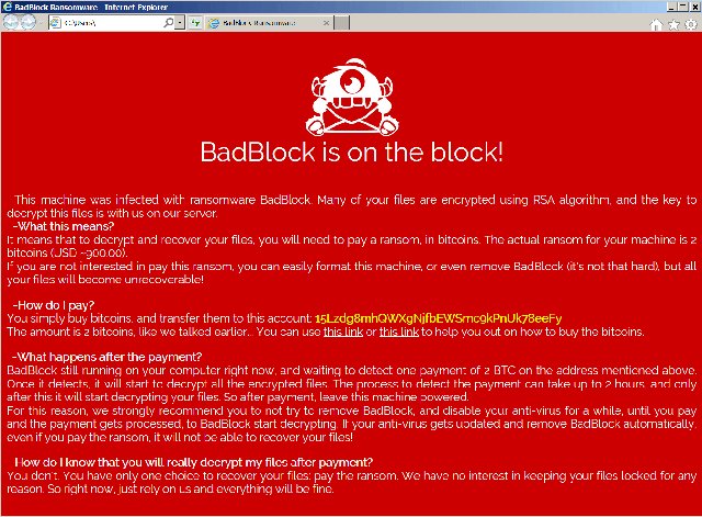 BadBlock does not rename your files but instead encrypts them and displays a message similar to the screenshot below.