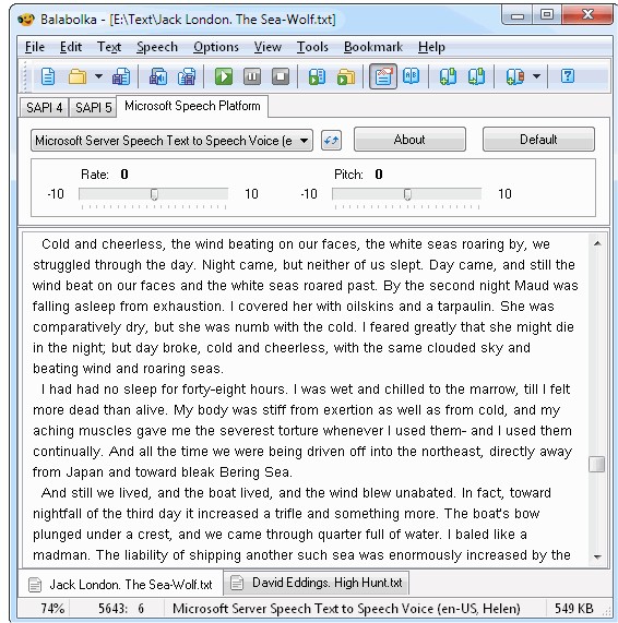 It can easily save any on-screen text as WAV, MP3, OGG, or WMA files. It can also successfully gather up all your clipboard content, view the text from DOC, RTF, PDF, FB2, and HTML files, customize font and background colors, and control reading via global hotkeys or the system tray. You will find that Balabolka is compatible with Microsoft Speech API (SAPI), permitting you to manipulate the parameters like voice rate, pitch, and volume.