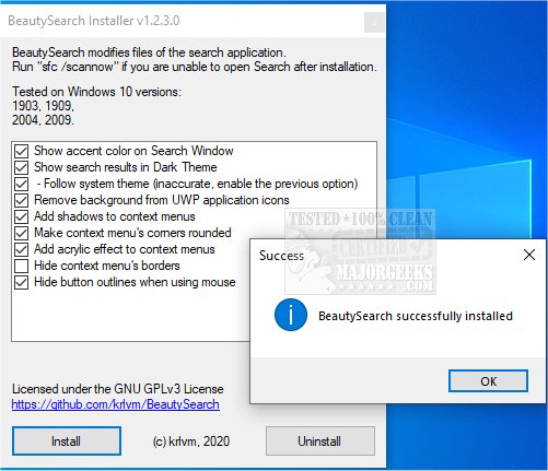BeautySearch is an Open Source Windows 10 Search Box appearance tweaker that allows you to customize its context menus and more.