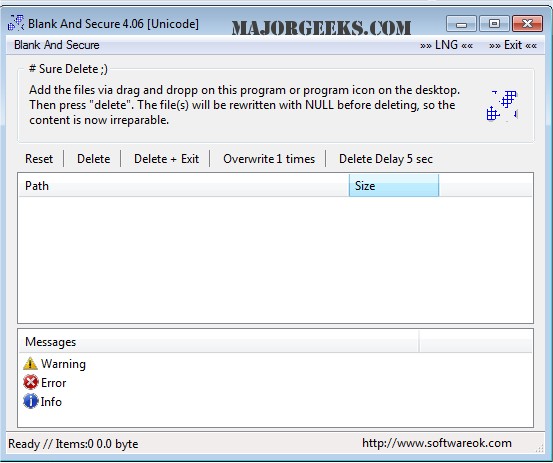 - The ability to overwrite files between 1 to 32 times with null values before deletion