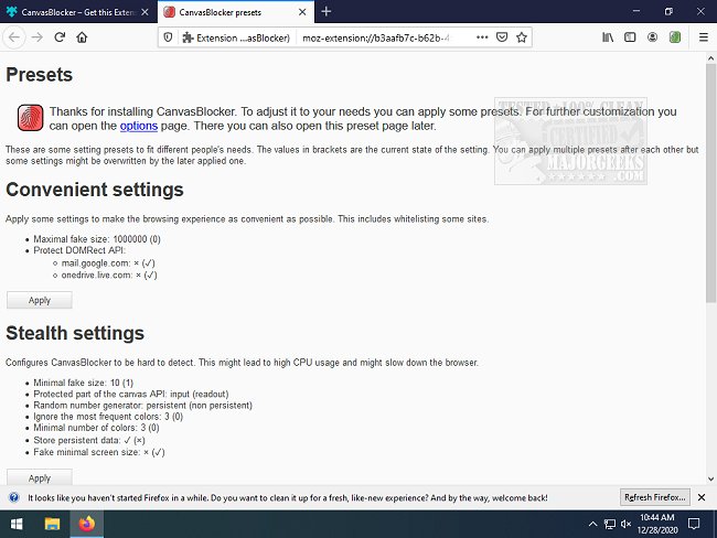 Canvas Blocker (Fingerprint Protect) for Chrome, Firefox, and Edge 1.12 released @ MajorGeeks