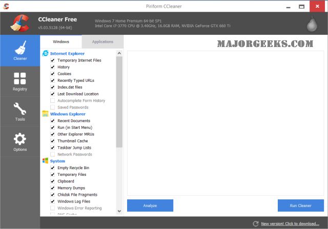 The drive cleaner and registry cleaner are both conservatives. There are drive cleaners out there that can clear more space if needed, but they aren't as safe as CCleaner. While we don't recommend cleaning your registry, again, CCleaner is very conservative, and I've never had an issue after thousands of uses.
