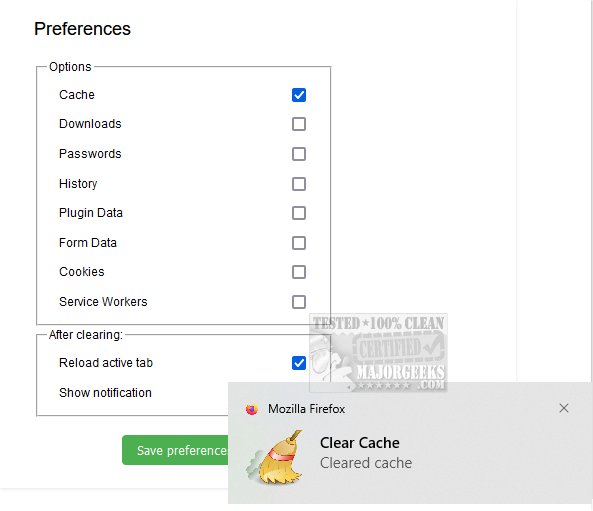 Clear Cache for Firefox lets you clear the cache, efficiently removing both disk and RAM cache by utilizing a single button click or using convenient keyboard shortcuts.