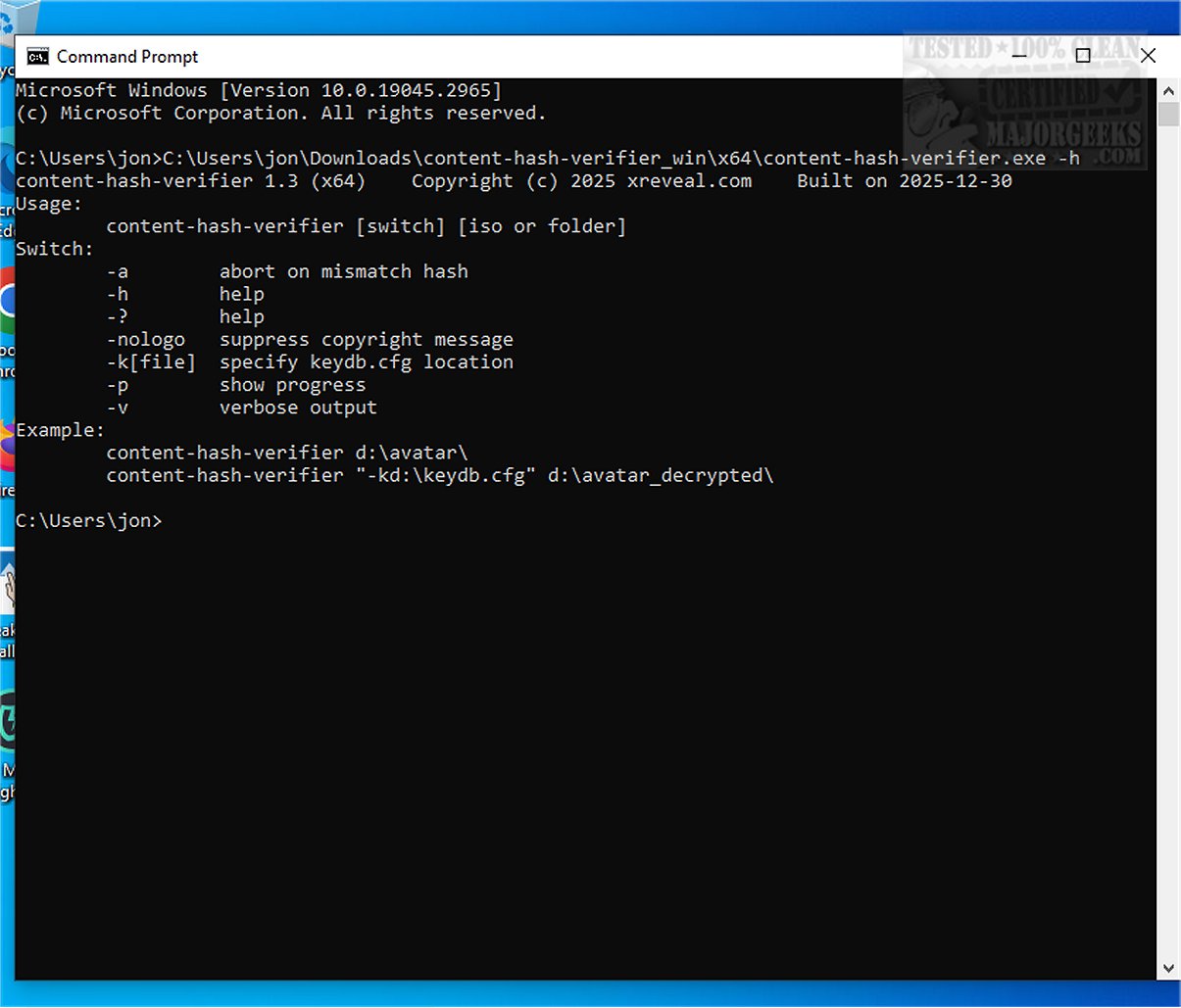 content-hash-verifier [switch] [iso or folder]Here are some of the available switches: