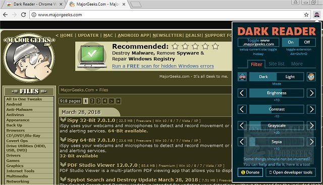 Dark Reader for Chrome, Firefox, Edge, Safari, and Thunderbird 4.9.125 released @ MajorGeeks