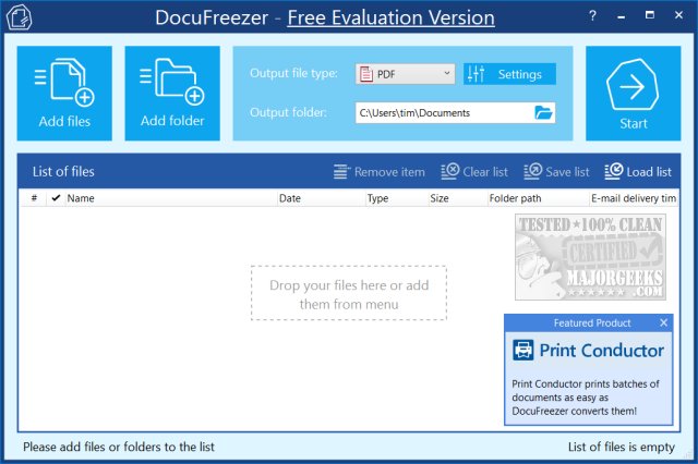 DocuFreezer is a free application that converts your documents and images to PDF, TXT, JPG, TIFF, or PNG formats, "freezing" the look of the input documents and protecting them from any amendments.