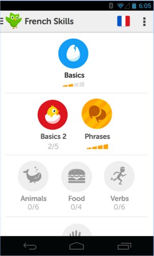 Duolingo: Language Lessons for Android helps to teach you Spanish, French, German, Portuguese, Italian, and English right from your handheld device.