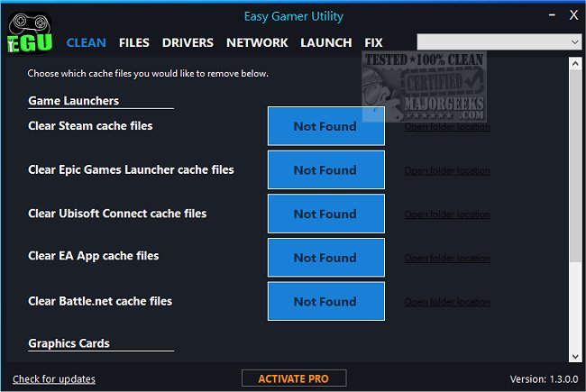 Easy Gamer Utility assists in clearing cache files for your game launchers and graphics cards to help improve overall performance.