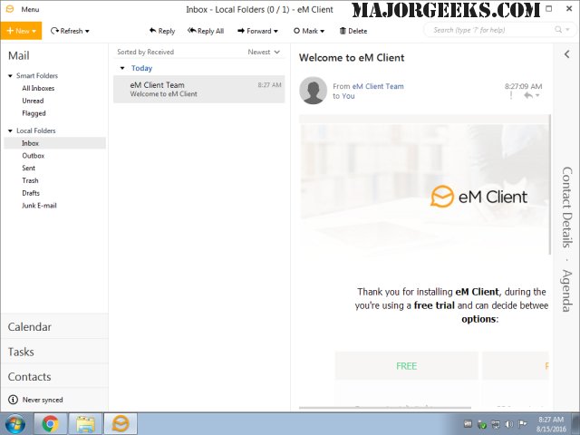 eM Client is a feature-rich email client that includes a modern, easy-to-use interface and offers a calendar, tasks, chat, contacts, and more.