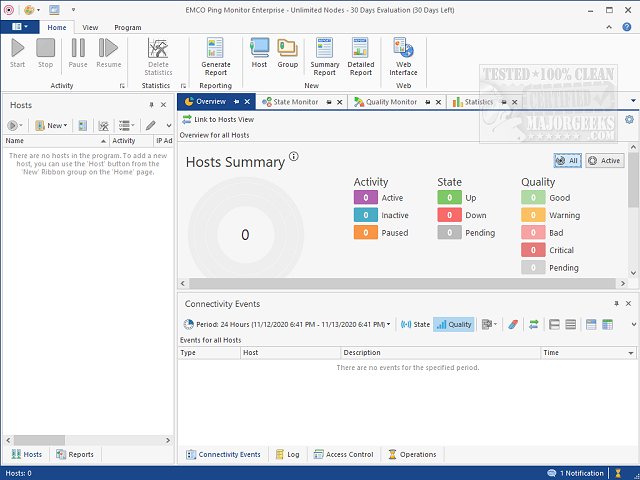 - Host Monitoring with Alerts: The software can trigger custom actions or notifications via email and SMS to inform users about changes in connection status.