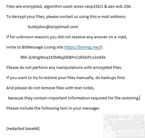 To decrypt your files, the decryptor will require a ransom note, which contains the encrypted key.