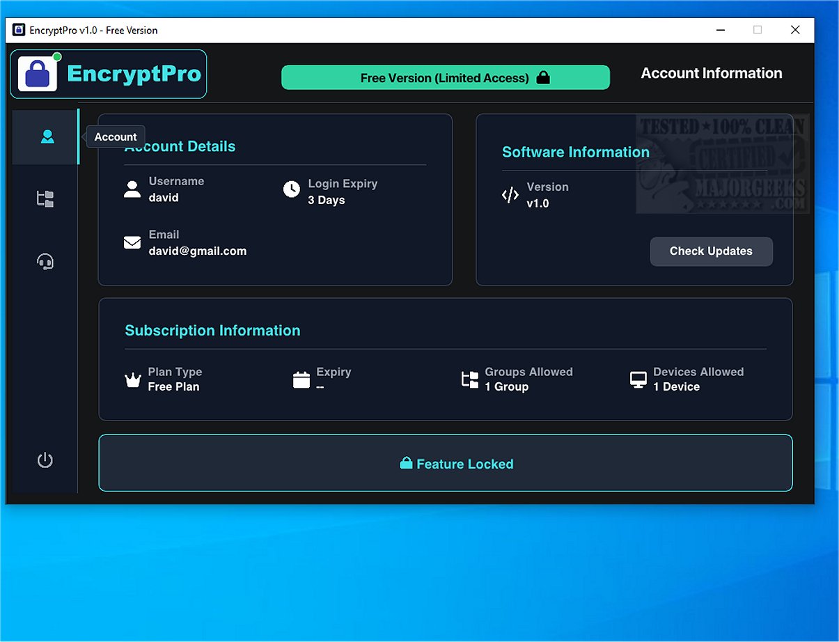 EncryptPro’s AES-256 encryption provides top-tier protection for sensitive files. The platform also offers other convenient features, including persistent logins that maintain user authentication across system restarts, and 24/7 customer support for any assistance needed. Users can organize their files into custom groups (up to five) for better management, and visual status indicators help users quickly identify the encryption status of their files.