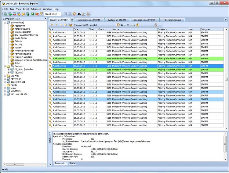 One of the standout features of Event Log Explorer is its ability to filter events based on a variety of criteria, with the added convenience of saving these filters for future use. This significantly streamlines the ongoing process of troubleshooting. Unlike the standard Windows Event Viewer, Event Log Explorer allows for the printing of event logs and individual events, as well as exporting logs to multiple formats such as HTML, Microsoft Excel, and tab-separated text files.