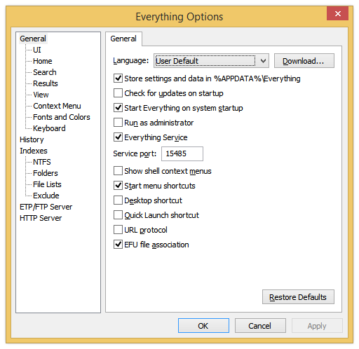 Everything Search Engine uses minimal resources and has an extremely clean and straightforward user interface that allows for quick and simple file indexing, searching as well as the ability to share files with others easily.