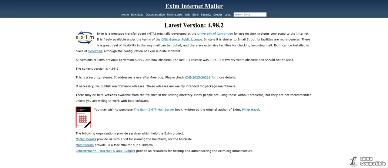 A new security release, Exim 4.99.1, has been made available to address a critical vulnerability identified as CVE-2025-67896. This vulnerability affects Exim versions starting at 4.99 and may also impact older versions that are no longer maintained. The good news is that installing version 4.99.1 on up-to-date systems like Exim 4.99 or newer will fix the issue. Users can obtain the updated software through various means, including a tarball from the FTP server or by accessing the code repository directly.