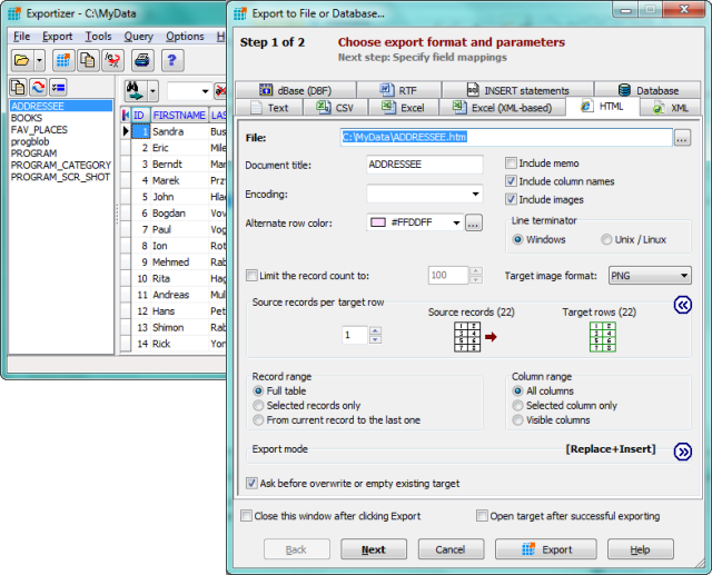Exportizer is a free database export tool that allows you to export data to a file, clipboard, or printer.