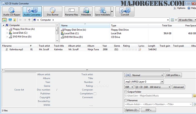 EZ CD Audio Converter is an all-in-one music converter that rips Audio CDs, converts audio files from one format to another, and edits metadata of audio files.