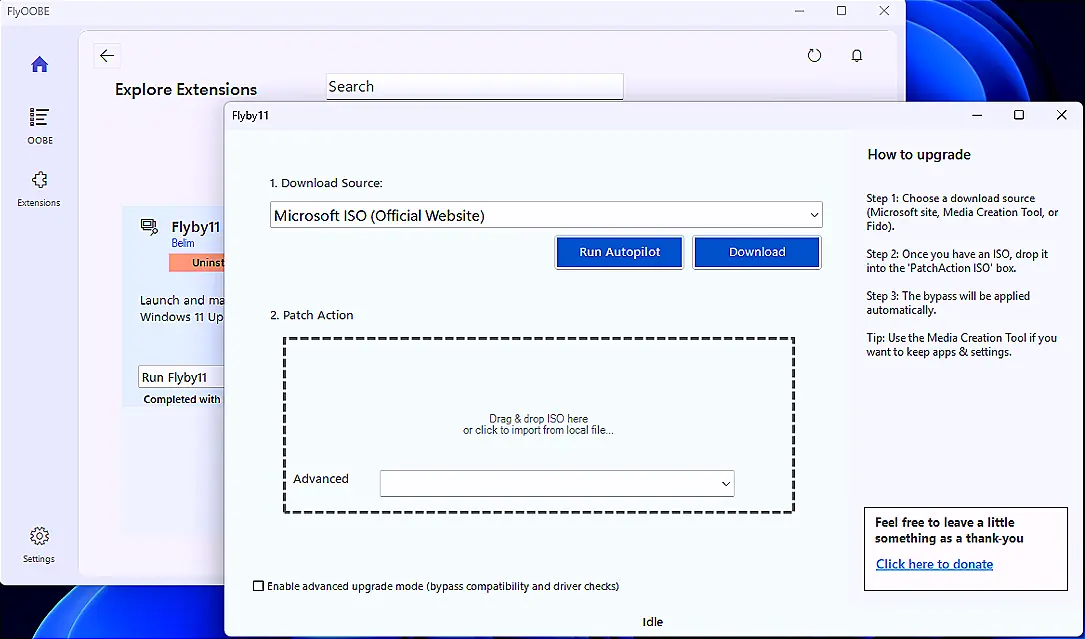The release of FlyOOBE 2.3 comes with various features, including tools for upgrading from Windows 10 to 11, full OOBE customization options, debloating tools, and scriptable setup extensions. Users can also access a nightly development build for ongoing updates and experimental features, though it may be less stable. The team behind FlyOOBE encourages users to download the latest version and support the project through donations.