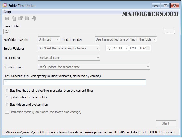 FolderTimeUpdate allows you to choose a base folder, quickly scan all folders and files located within for viewing, and then change the modified times.