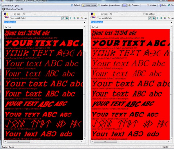 The problem is well known: Only the written form is remembered, but the name is forgotten. Here is where FontViewOK can help by enabling you to visualize all of your machine's fonts. The deployment is so simple that you do not even need a help file.