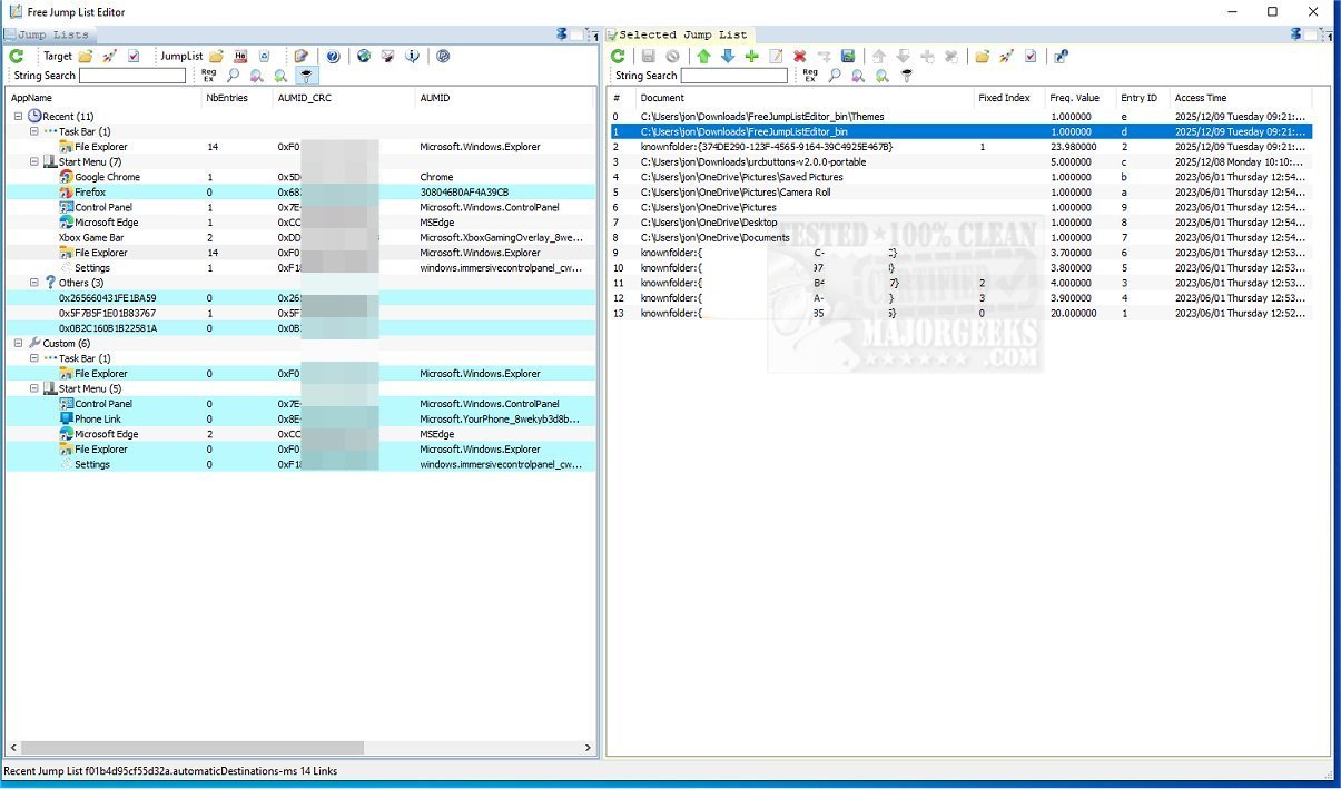 Free Jump List Editor empowers advanced users by allowing them to manage and modify jump lists typically restricted by Windows. The tool displays and enables editing of both recent and custom jump lists for all pinned applications on the taskbar and Start menu. Users can add, remove, or rearrange entries as they see fit.