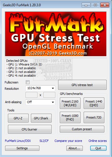 FurMark OpenGL benchmark test will accurately measure the graphics card's performance using Fur rendering algorithms. Furmark 2 is now available.