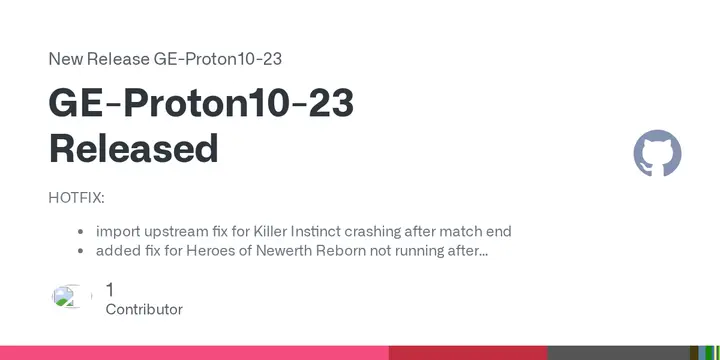 GloriousEggroll has released GE-Proton10-23, which addresses several issues in various games. The update includes fixes for crashing problems in Killer Instinct after matches end, an issue preventing Heroes of Newerth Reborn from running due to the Juvio client closing unexpectedly, and a bug where skill videos wouldn't play in Ghosts n' Goblins Resurrection. The release also rebases patches to align with upstream Proton's build options, ensuring consistency and compatibility between GE-Proton10-23 and future Proton builds.