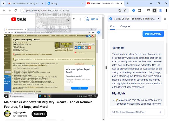 Glarity ChatGPT: Summary and Translate AnyPage 4.46.3 released @ MajorGeeks