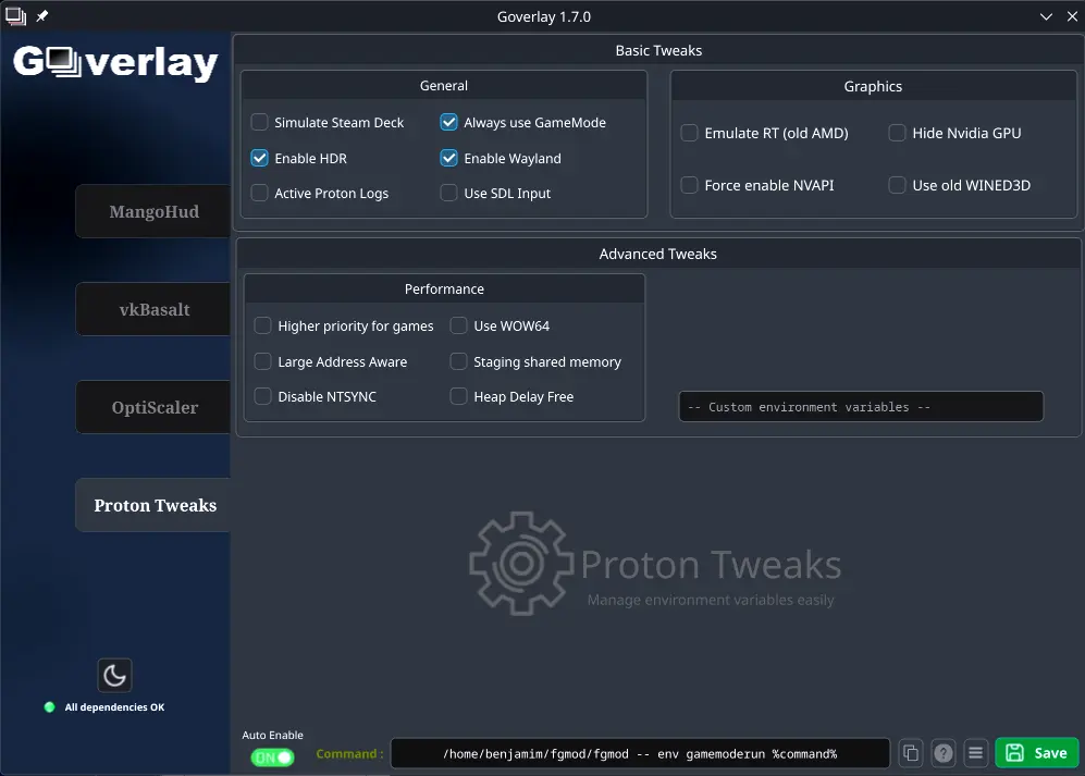 A standout addition is the new "Proton Tweaks Tab," which centralizes the management of settings such as HDR support, GameMode, and Wayland configurations, all accessible with a single click. This tab also caters to users with older hardware by including Radeon RT emulation options and provides flexibility for those who want to customize their environment variables further.