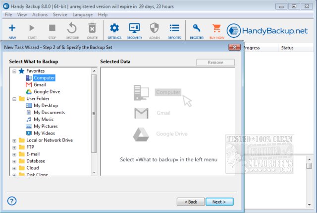 Handy Backup includes various backup options such as on-the-fly ZIP64 compression, 128-bit Blowfish encryption, and the ability to run other programs before and after backup tasks. Its user-friendly, Wizard-based interface simplifies the setup process for backup tasks. The software is highly flexible regarding scheduling and administration, capable of running as a Windows service and supporting a command-line interface, email notifications, and logging.