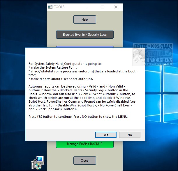While many of Hard_Configurator's tasks can be performed through registry modifications, the program simplifies the process for advanced users. It also provides options for restoring Windows defaults, creating system restore points, and managing profiles for settings and whitelists.
