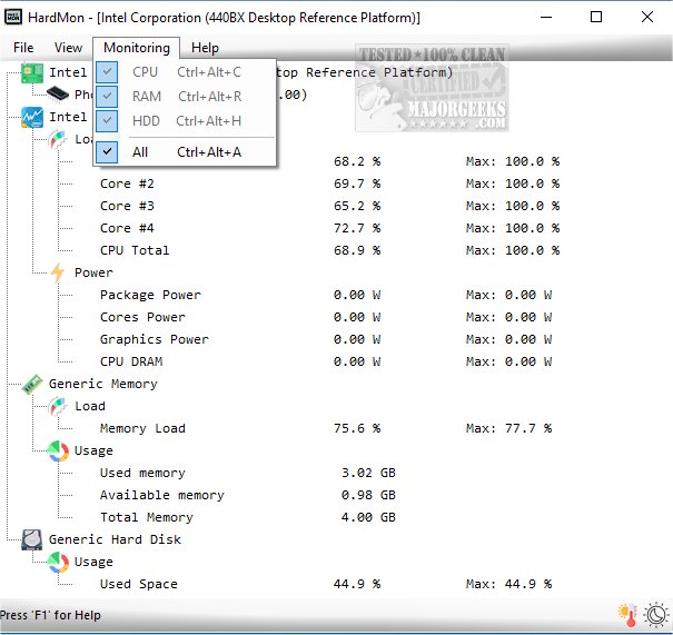3. Comprehensive Data Access: HardMon provides detailed CPU metrics, including core clock speeds, operating temperatures, and power consumption. Similar insights are available for GPUs. Additionally, users can view real-time statistics on memory and storage loads, enhancing overall system awareness.