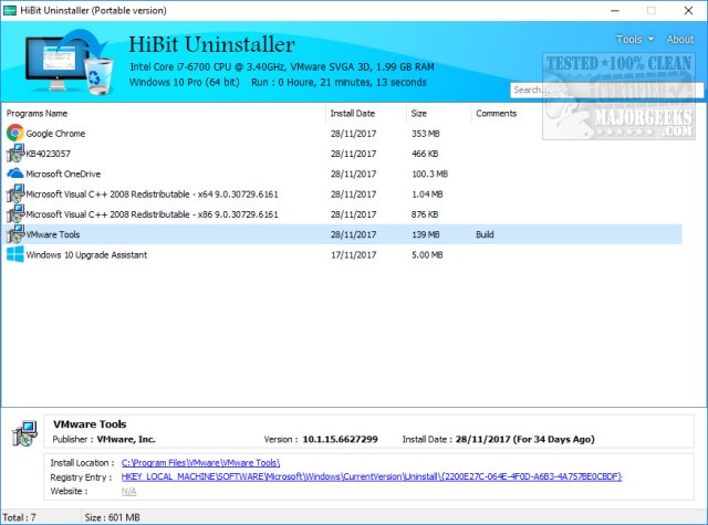 HiBit Uninstaller can completely uninstall Windows programs and features ten more tools, including a drive and registry cleaner, process and startup manager, and more. One of our Top Freeware Picks that includes a video tutorial.