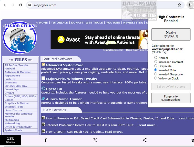 High Contrast for Chrome allows users to invert a web page's color scheme.