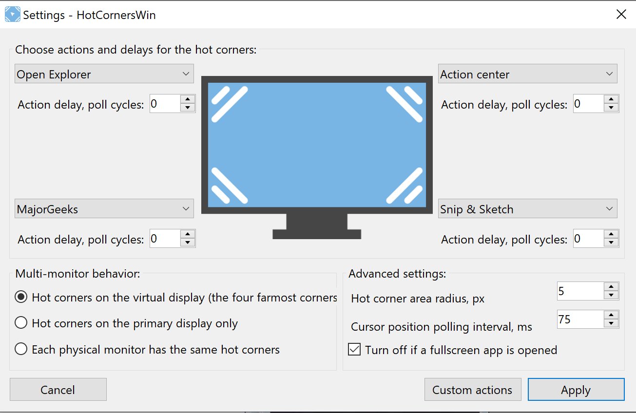 Installation is straightforward, requiring minimal resources and ensuring a seamless integration into the existing environment. HotCornersWin operates by monitoring mouse movements at set intervals, striking a balance between responsiveness and CPU efficiency. The default monitoring interval is 75 milliseconds, which typically offers optimal performance without necessitating user adjustments.