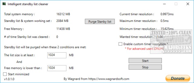 Intelligent Standby List Cleaner 1.0.3.8 released @ MajorGeeks