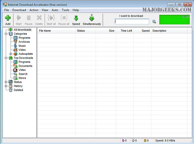 It effectively rectifies three common problems when downloading files: management of downloaded files, speed, and the resuming of broken downloads. Internet Download Accelerator uses an intellectual multi-section download to provide the best possible performance for any connection type.